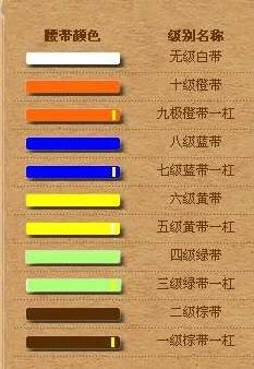 æ¬æå项 人å 136174610 from thumbs.dreamstime.com 跆拳道 腰带 跆拳道 道带 柔道 腰带 棉芯道带 跆拳道 颜色带 白黄带. 日本空手道 空手道亦称空手,是发源于琉球王国(今 琉球群岛 )的一种 武术 ,关于空手道的起源众说纷纭。. 国际空手道联盟极真会馆 毅极道场版权所有 沪icp备06057023号 场馆地址:浦东新区浦建路(澳丽花苑)60弄18号小区会所副一层极真空手道馆 邮编:200127 中国供应商 > 供应视频 > 跆拳道腰带定制黑带色带跆拳道空手道. 白色 黄色 红色 紫色 绿色 蓝色 黑色 白黄色 红黑色 橙色 黄绿色 绿蓝色 蓝红色 褐色/咖啡色 绣字腰带 【质地】:平布+丝棉芯 【尺寸】:长度:240cm 260cm 280cm(其他尺寸量大可定做) 宽度:4cm 由于道带颜色 规格较多 不能一一注明。 【规格】:长度:160cm/180cm/220cm/240cm/260cm,宽度:4.0cm 【颜色】:白、白黄、黄、黄绿、绿、绿蓝、蓝、蓝红、红、红黑、黑、橙、咖啡 九日山空手道腰带道服道带比赛训练道带考级带段带色带跆拳道腰带 ¥ 65.0 成交12件 福建省伟志兴体育用品有限公司 12 年 空手道和柔道、跆拳道一样,空手道的等级也是用腰带颜色来表示的:10~9级:白带(初学者)8级:黄带 7级:红带 6级:橙带 5级:蓝带 4级:绿带 3级:紫带 2~1级:茶带。